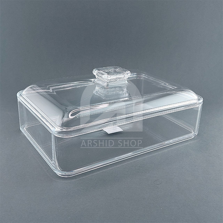 بیسکوئیت خوری مستطیل GHT مدل 1830 برای سرو و نگهداری انواع بیسکوئیت، آجیل، شیرینی، شکلات و... مناسب می باشد. این محصول با طراحی مدرن و زیبا جلوه ای خاص به میز پذیرایی شما می بخشد. فضای داخل بیسکوئیت خوری مستطیل GHT مدل 1830 به اندازه ای است که مقدار مناسبی از خوراکی درون آن جای میگیرد و شما همیشه آماده پذیرایی هستید. بیسکوئیت خوری مستطیل GHT مدل 1830 از جنس آکرولیک با کیفیت نشکن است و شفافیت آن با شیشه تفاوت چندانی ندارد. ابعاد آن 25 در 17 و ارتفاع آن با احتساب درب 11 سانتی متر و وزن آن 650 گرم است.