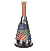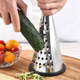 این رنده مخروطی با طراحی ارگونومیک بسیار راحت در دست قرار میگیرد و از خستگی دست جلوگیری می کند. سبک و درعینحال مقاوم است و به صورت دوتکه، شامل تیغه هرمی شکل استیل ضد زنگ، دارای سه سایز مختلف رنده ریز، متوسط و درشت و دسته چوبی بامبو ضد آب که به صورت پیچی به قسمت تیغه متصل گردیده، تولید شده است که ارتفاع آن حدود 30 سانتی متر است. قطر قسمت پایین رنده 13 سانتی متر است و فضای کافی برای ورود دست را به شما می دهد که شستشوی داخل رنده را بسیار راحت میکند. نوار سیلیکونی تعبیهشده در قسمت پایین رنده در زمان استفاده از سرخوردن و ایجاد خط و خش بر ظروف و سطوح جلوگیری مینماید.