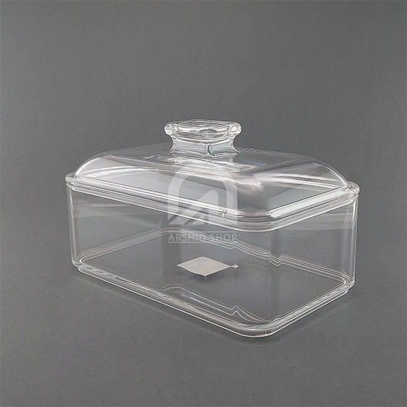 بیسکوئیت خوری مستطیل اکرولیک GHT مدل 1393 برای سرو و نگهداری انواع بیسکوئیت، آجیل، شیرینی، شکلات و... مناسب می باشد. این محصول با طراحی مدرن و زیبا جلوه ای خاص به میز پذیرایی شما می بخشد. فضای داخل بیسکوئیت خوری مستطیل اکرولیک GHT مدل 1393 به اندازه ای است که مقدار مناسبی از خوراکی درون آن جای میگیرد و شما همیشه آماده پذیرایی هستید. بیسکوئیت خوری مستطیل اکرولیک GHT مدل 1393 از جنس اکرولیک با کیفیت نشکن است و شفافیت آن با شیشه تفاوت چندانی ندارد. ابعاد آن 20 در 12 و ارتفاع آن با احتساب درب 12 سانتی متر و وزن آن 405 گرم است.
