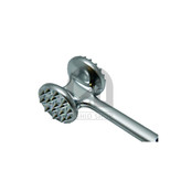 بیفتک کوب یک وسیله بسیار کاربردی برای کوبیدن و پهن کردن انواع گوشت می باشد.این ابزار در بازار در جنس های مختلفی عرضه شده است. یکی از بیفتک کوب های با کیفیت موجود در بازار بیفتک کوب شنگیا مدل E2799 A بوده که یک برند شناخته شده است و در رستوارن ها و یا در خانه معمولا برای درست کردن استیک و یا فیله از این ابزار استفاده می کنند. بیفتک کوب شنگیا مدل E2799 A از جنس استیل ضد زنگ بوده و رویه دسته نیز از جنس سیلیکون است و به راحتی در دست قرار گرفته و لیز نمی خورد و به کمک آن می توانید به سادگی مرغ و گوشت خود را بکوبید. بیفتک کوب شنگیا مدل E2799 A دارای دو سر با دندانه های ریز و درشت است و که متناسب با نوع گوشت و میزان دلخواه باز کردن گوشت از هرکدام استفاده کنید. شست و شوی آن بسیار راحت است و میتوانید از ماشین ظرفشویی هم استفاده کنید. طول این محصول 22، عرض آن 5 و قطر قسمت چکشی 4 سانتی متر است.